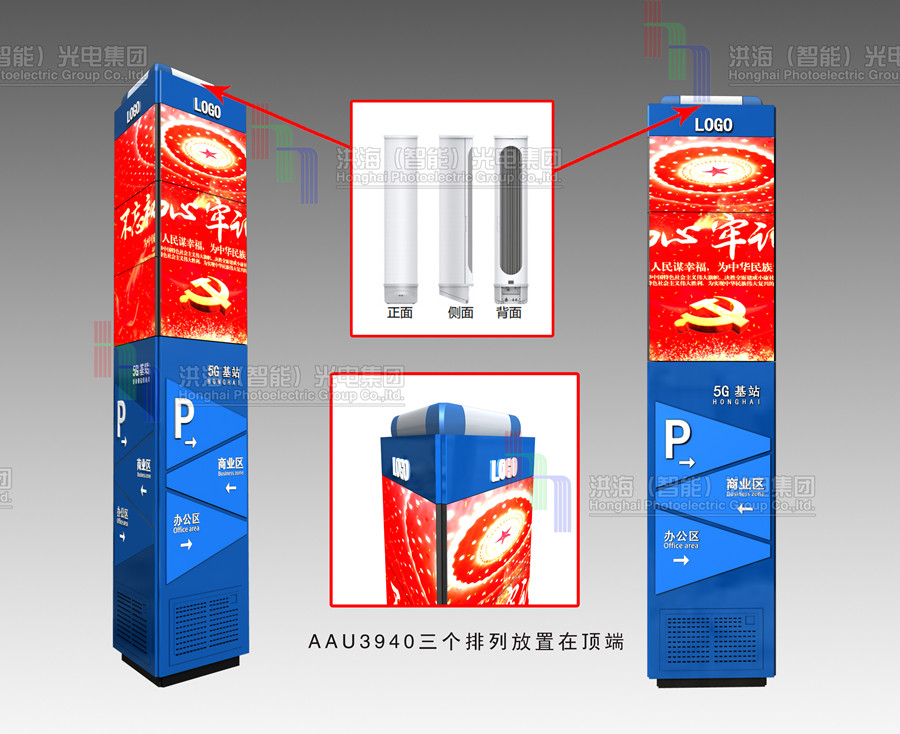 (2)洪海5G智慧燈桿螺旋旋轉(zhuǎn)屏的音響要定做,一般音響無法內(nèi)置,要防水,要達(dá)到傳播距離