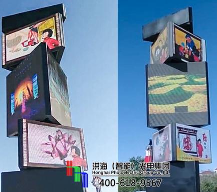例如,近期洪海在給天津河西區(qū)一個客戶安裝的LED數字旋轉魔方柱。