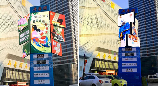 城市商圈是人流聚集區、擁有足夠的人流密度,消費能力,中高端品牌重金投放的目標方向。但廣告位簇擁,陣地費高昂,選擇合適的媒體形式至關重要。洪海智造魔方柱形式新穎,柱狀體造型獨特可定制,在諸多廣告牌中格外引人矚目,視頻與動作完美配合,實現陣地廣告價值的全新升級。