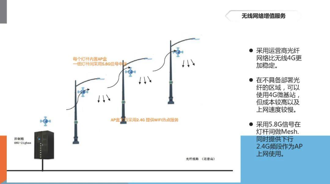 智慧路燈也叫智慧城市多功能一體桿,以燈桿為載體,通過掛載各類設備提供智能照明、5G基站、城市監測、交通管理、信息交互和城市公共服務等功能,有效提高智慧城市建設進程,是“新基建”中“智慧城市”建設的基礎工程,一盞盞智慧路燈的聯結,形成一張物聯網,通過后端大數據平臺,實現多種應用。它的出現解決了城市治理中的重復投資、重復建設、重復運營的資源浪費,美化了城市形象,一根桿體解決諸多應用難題,為城市綜合治理提供了一套切實可行高效應用平臺解決方案。