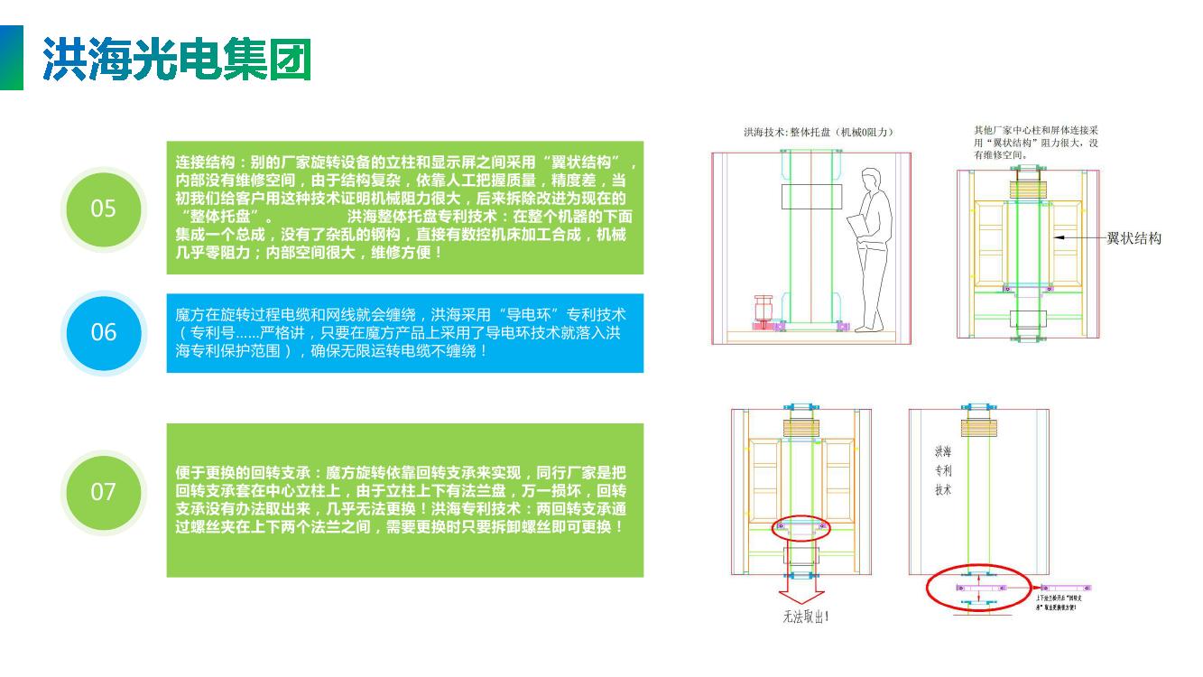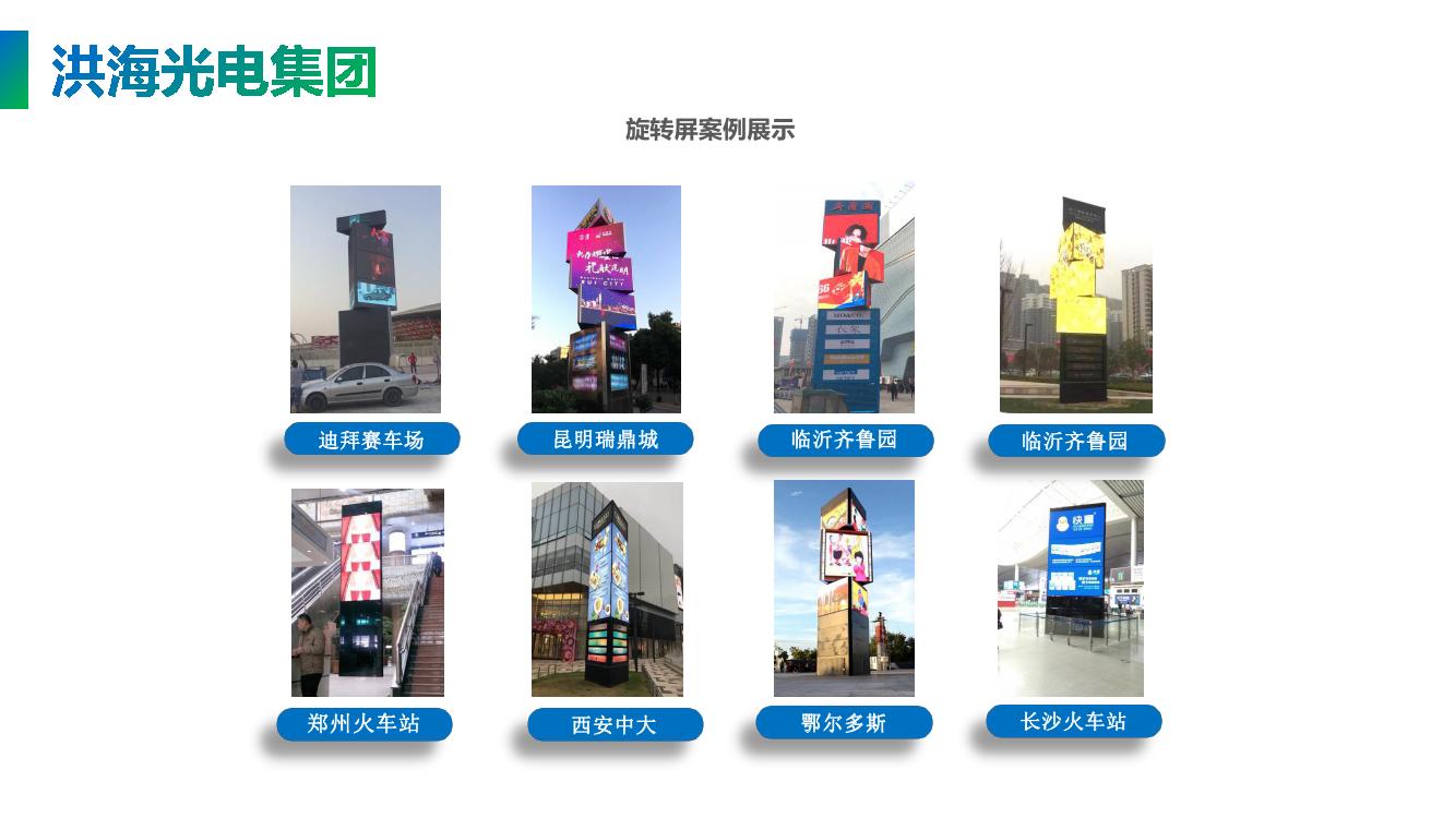 具體來說是:LED旋轉魔方屏是由三角形或四方形LED顯示屏箱體組合,在旋轉支撐、不繞線導電刷、轉動花樣軟件編程等多個系統配合下,使三個三角形或四方形LED顯示屏按照電腦編制的程序---不同時間花樣轉動---定格在一個平面,展示三個視頻畫面。相比傳統顯示屏更具有動感和視覺沖擊力,新穎的廣告形式,大大提高了顯示屏的功能檔次和外觀裝飾效果,同時具有藝術氣質的高科技產品,瞬間吸引您的眼球,提升廣告創意,帶來更大的商業價值,成為美化城市的城市地標。