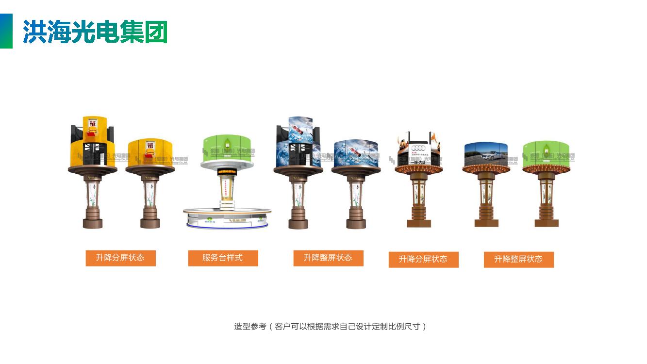 洪海光電集團有限公司 是一家專業致力于智能景觀動態LED顯示屏的研發,以智能機器人高端宣傳設備為研究方向,我們將機器人的機械運動美學和LED智能顯示相結合,創造出系列智能廣告和展示設備,實現顯示屏的旋轉升降、伸縮、變形、無線傳輸、遠程控制、人機互動等現代智能化元素,為智慧城市提供全套的城市景觀、戶外廣告、機械幕墻配套的技術服務方案。 總工程師史洪海先生獲200多項國家專利,是受聘于中國青年創業國際計劃的青年創業導師和大學產業教授,在中國智能光電行業中具有非凡的創造力和舉足輕重的地位。